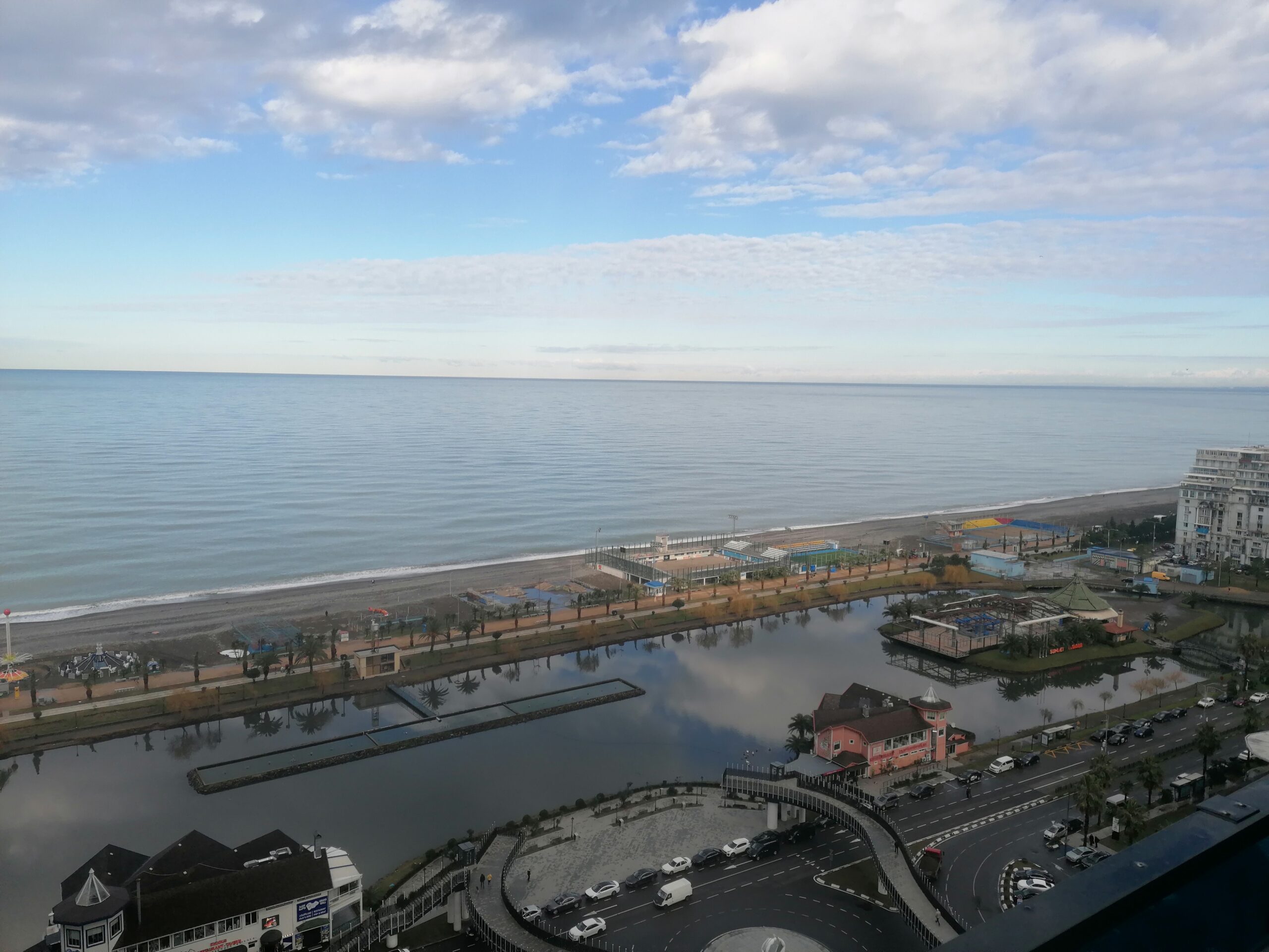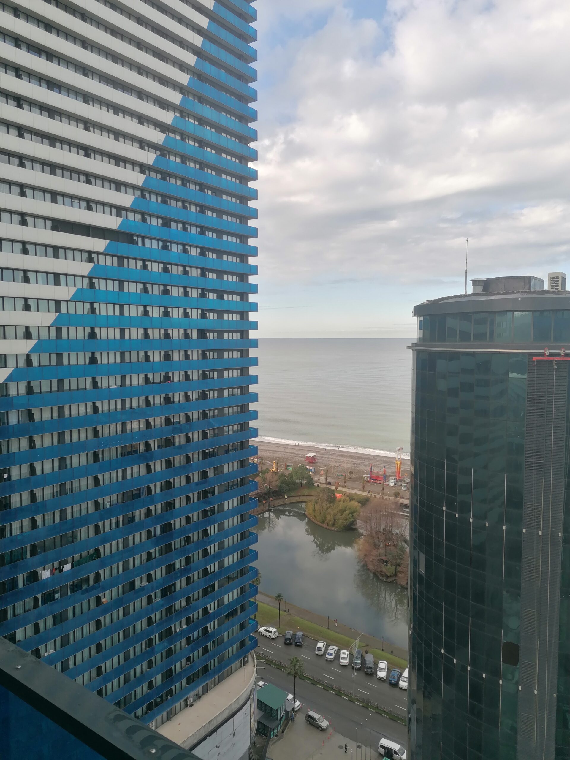 Z okien i balkonu roztacza się widok na centrum Batumi, morze i Nowy Bulwar.